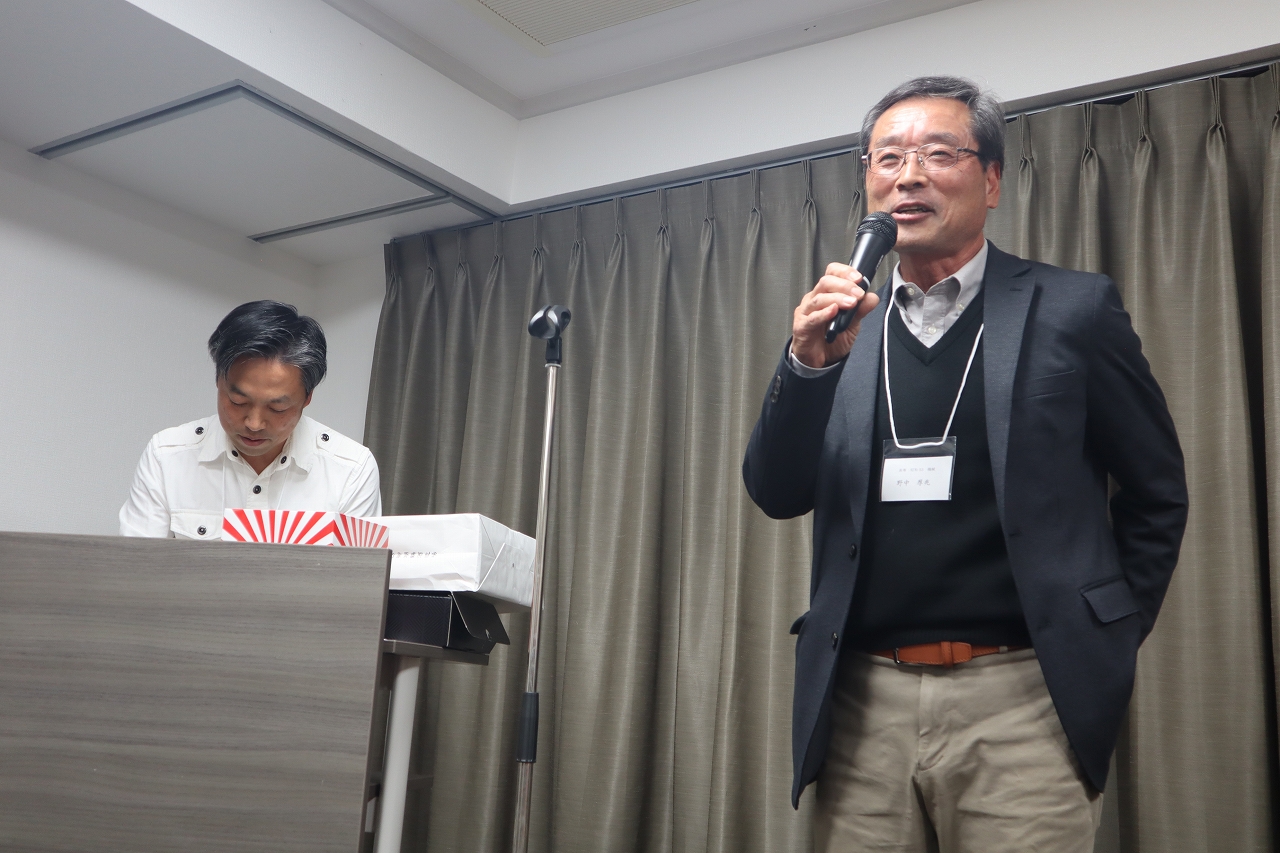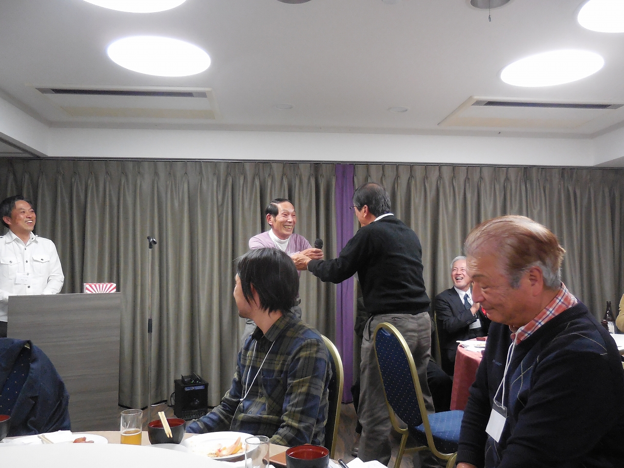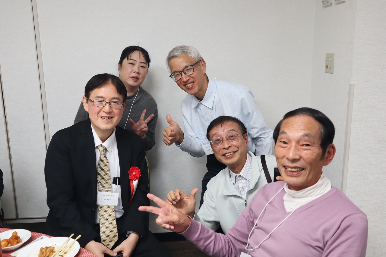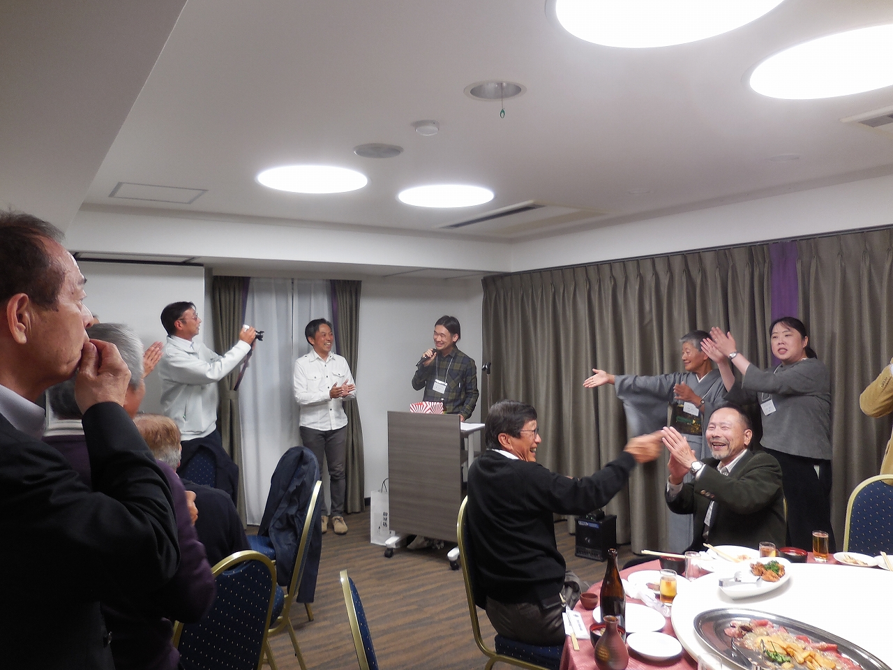 同窓会本部の広重副会長に乾杯のご挨拶をいただいた後、懇親会では82歳の大先輩から27歳の若手まで幅広い皆さんが共に久留米で過ごした学生時代の思い出話しや近況報告など笑顔で楽しい時間を過ごし、後半の景品抽選会も賑やかに執り行い、盛会に終えることができました。