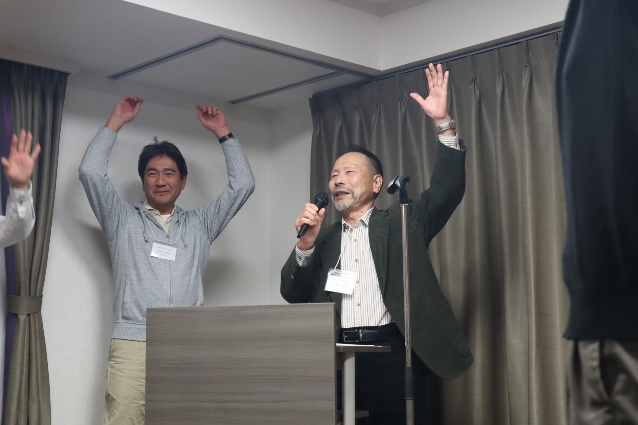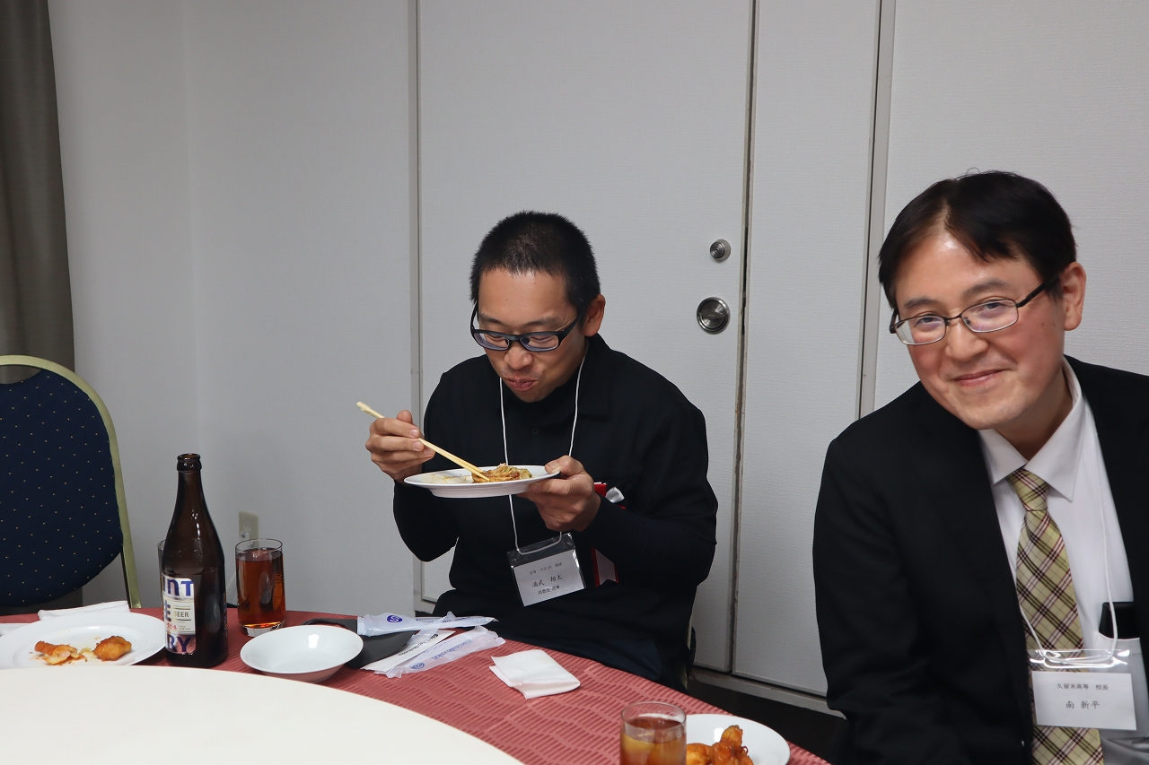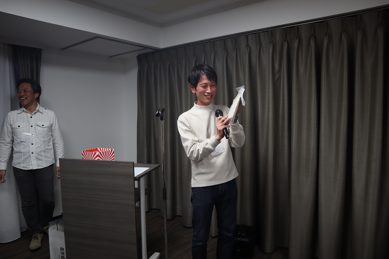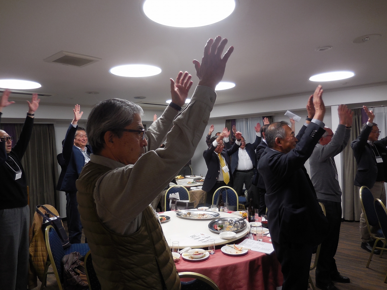 同窓会本部の広重副会長に乾杯のご挨拶をいただいた後、懇親会では82歳の大先輩から27歳の若手まで幅広い皆さんが共に久留米で過ごした学生時代の思い出話しや近況報告など笑顔で楽しい時間を過ごし、後半の景品抽選会も賑やかに執り行い、盛会に終えることができました。